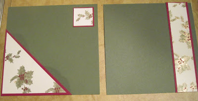 Here is the Christmas version of the One Sheet Wonder scrapbook. Made with the Bells and Boughs set from the current Holiday Mini Catalog. Embossed image with gold embossing powder, and then colored in with aqua painter and ink pads. In person, this has an elegant feel!
